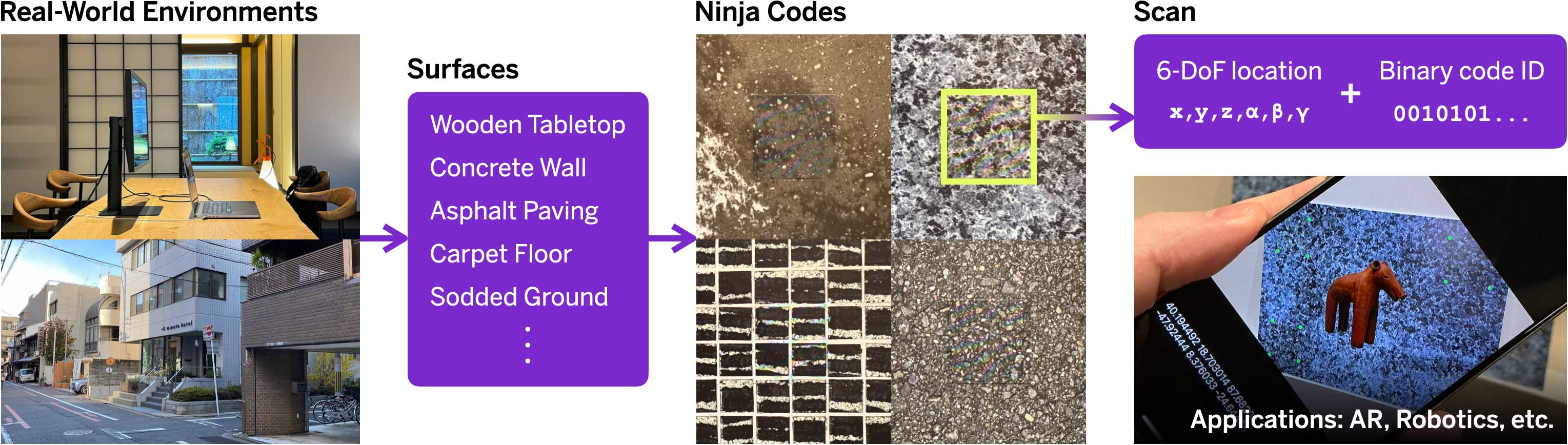 Ninja Codes are fiducial markers that appear inconspicuous to humans, but can be reliably detected through software to provide 6-DoF tracking.